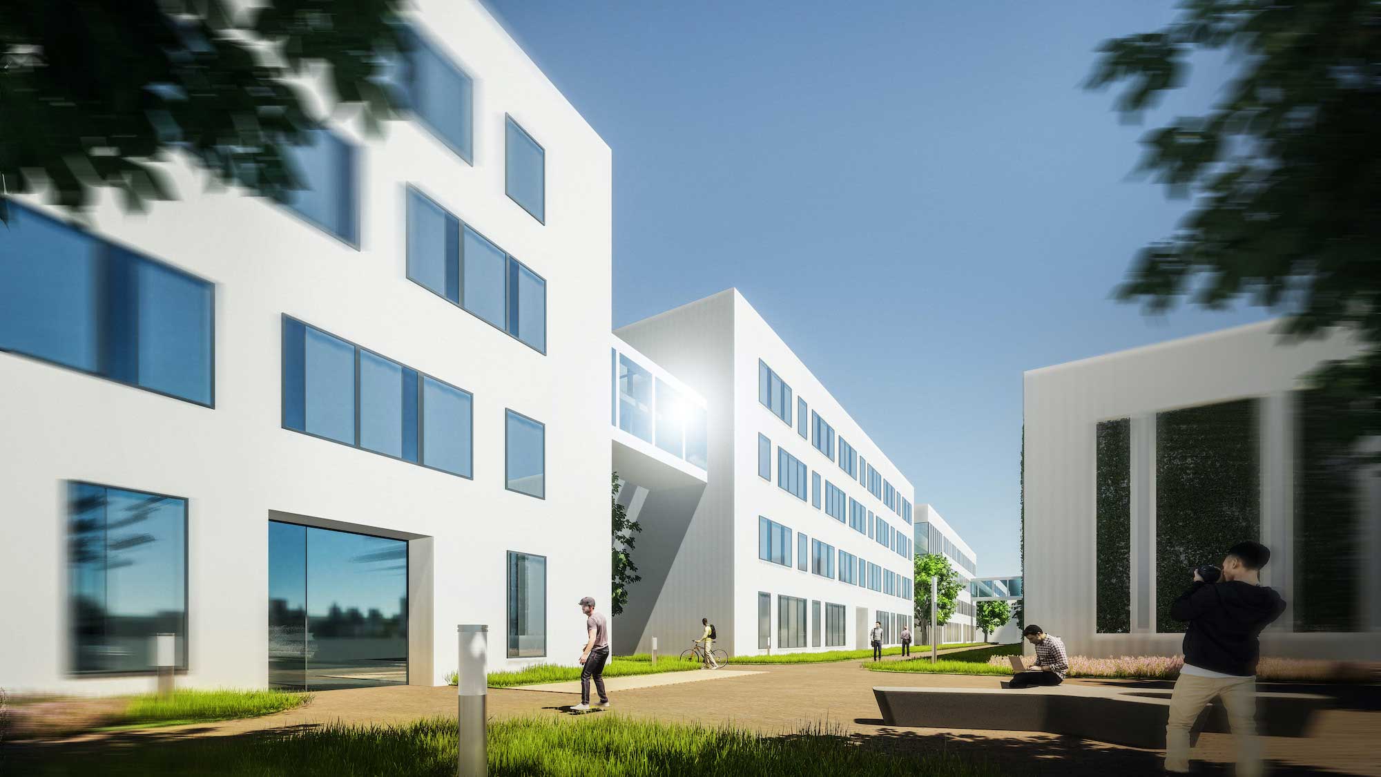 Die Simchen Höfe bestehen aus flexiblen und mieterspezifischen Gebäuden mit Mietflächen ab 200 m², insgesamt werden bis zu 25.000 m² Mietflächen auf dem Campus entstehen.